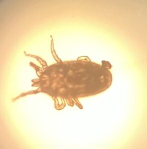 Hamster qui se gratte et la propriétaire présente également quelques piqûres. Peu de parasites sur l'animal, mais beaucoup dans son environnement, l'examen microscopique permet d'identifier Ornithonyssus bacoti. Un traitement de l'animal et de son environnement sont mis en place.